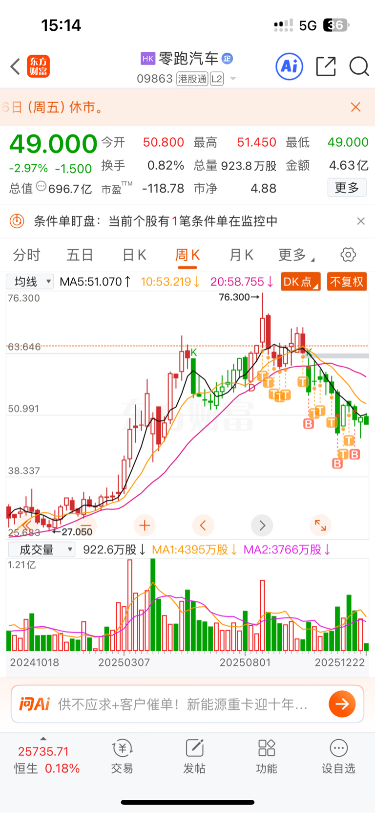 $零跑汽车(HK|09863)$ 想割肉了,天天跌的,完全看不到希望,同样的利空,就它跌的最狠,涨的最少。lj 公司。就是套的太深了