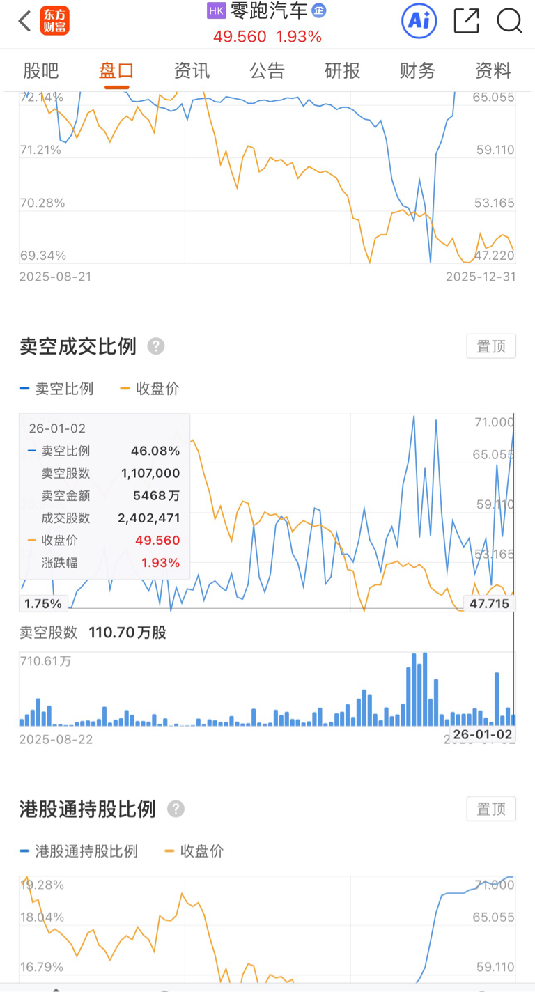 $零跑汽车(HK|09863)$ 卖空又增加了,46.08%!周一能回调么?