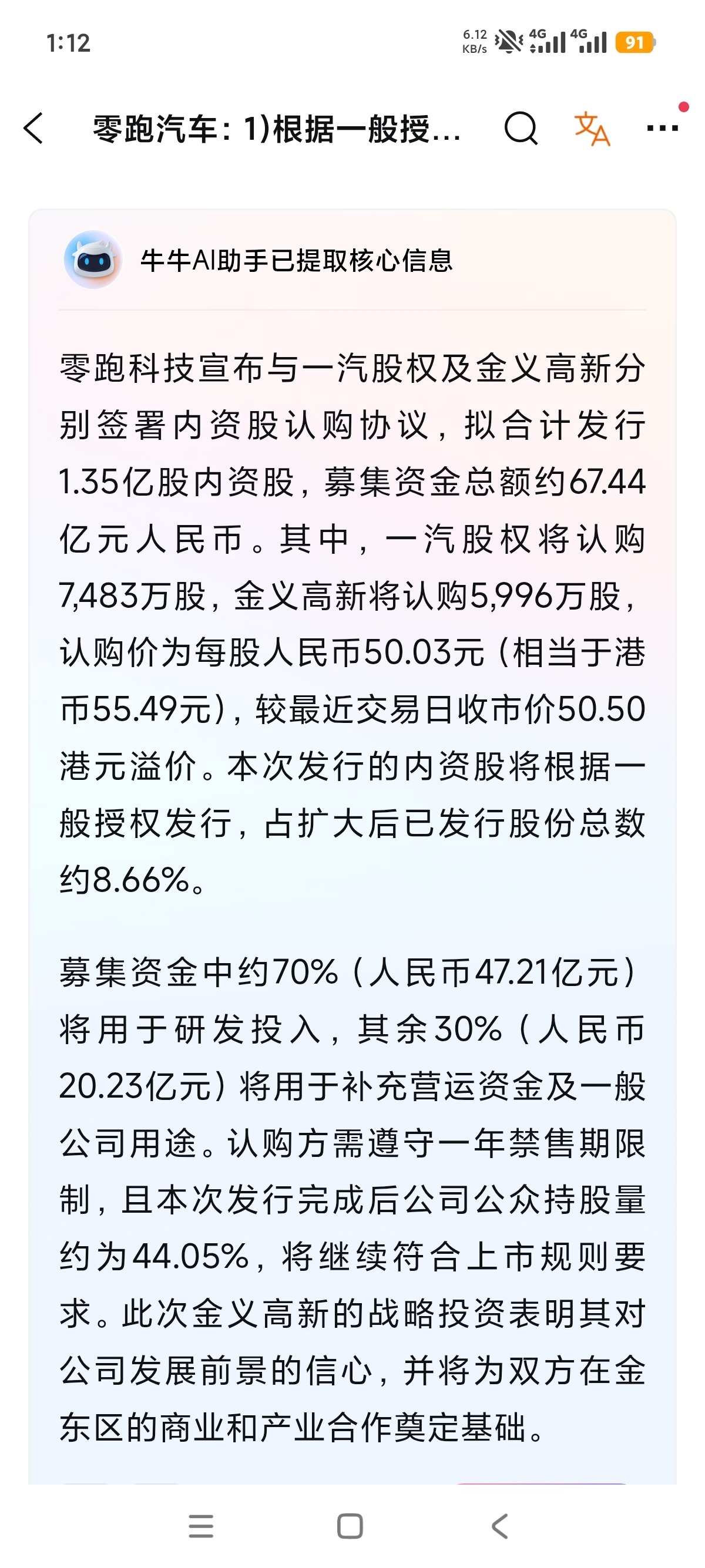 $零跑汽车(HK|09863)$ 一般都是折价认购,零跑竟然能让资本溢价认购,而且还是内资股