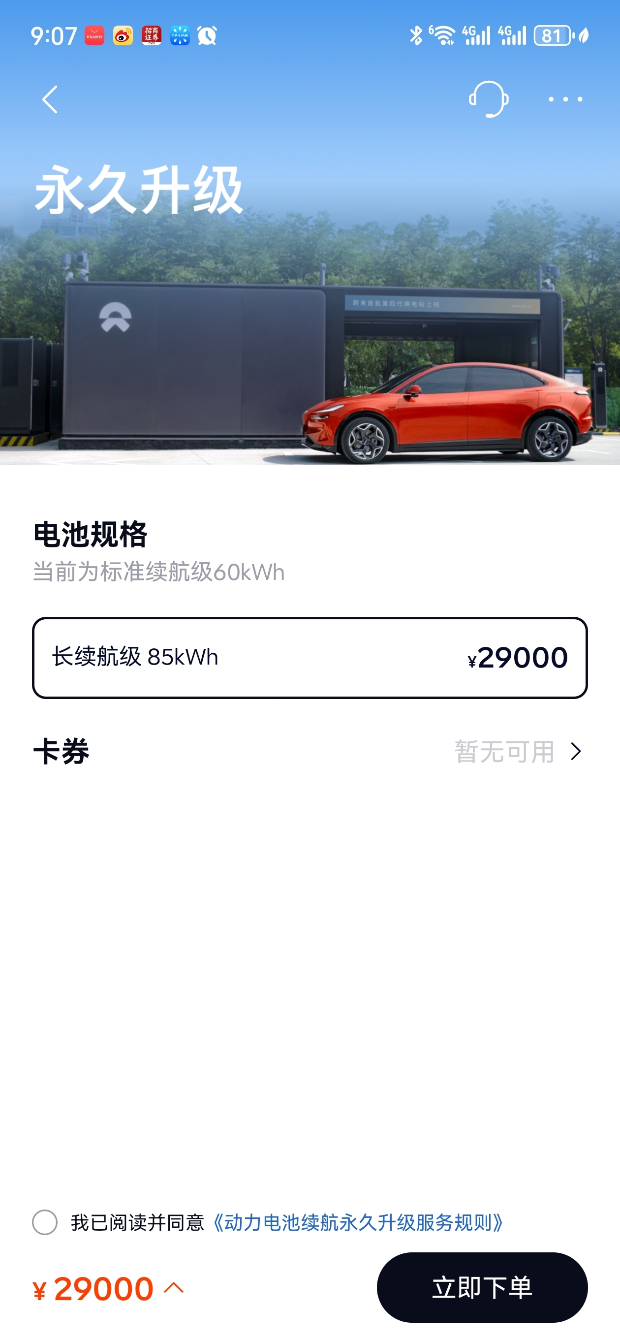 蔚来真牛逼!60度电池高速能300以上,其实完全够用,但是如果你觉得短了,也可以随时永久升级,如果觉得长续航电池太长了,可以临时把电池换短续航电池,蔚来给积分补助,真是牛逼克拉斯!