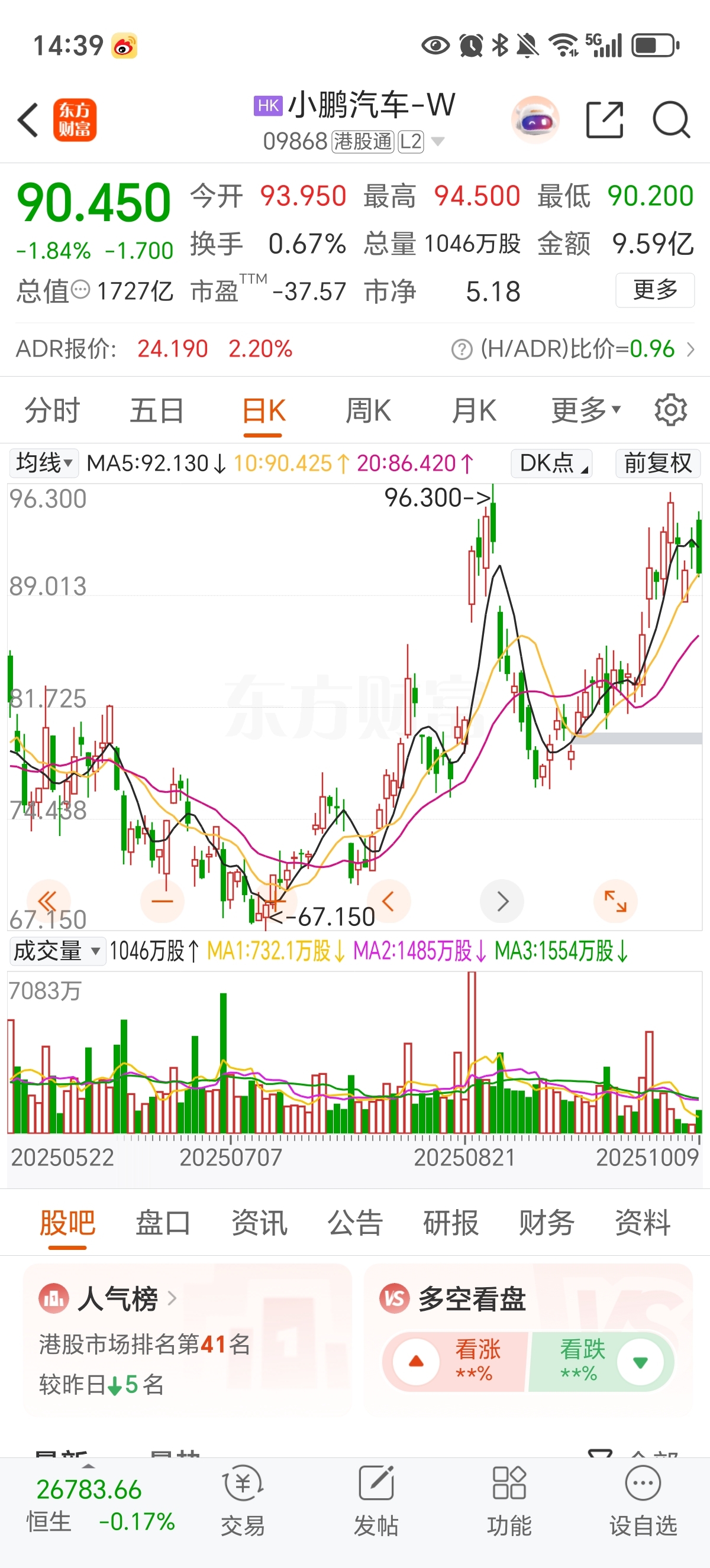 $小鹏汽车-W(HK|09868)$ 这走势会不会走出M头?