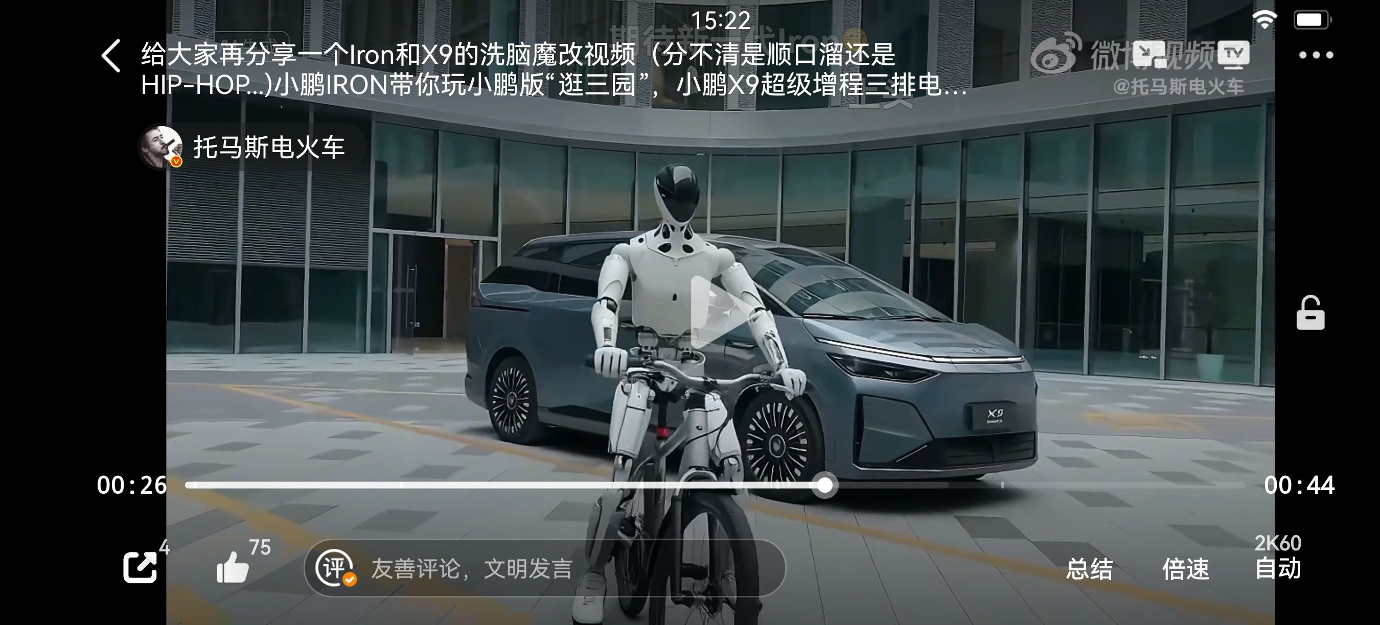 $小鹏汽车-W(HK|09868)$ 目测小鹏科技日Iron也要大放异彩,从X9的宣传片看,Iron居然会骑自行车!