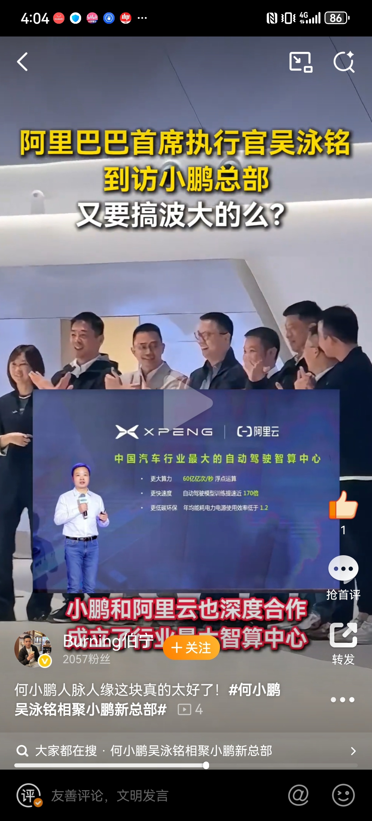 $小鹏汽车-W(HK|09868)$ 阿里CEO拜访小鹏总部