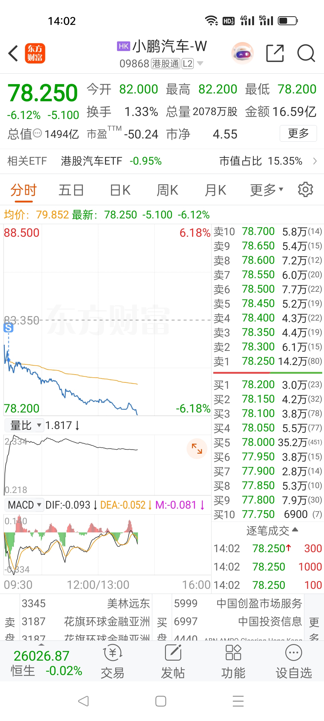 $小鹏汽车-W(HK|09868)$ 看日线情况不对,割肉跑,本月不买任何票,歇