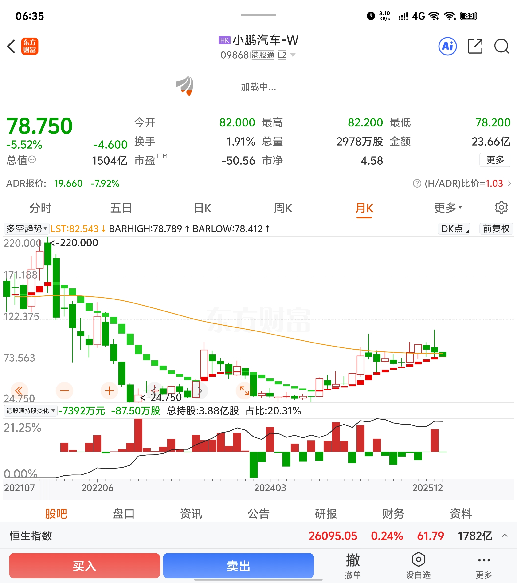 $小鹏汽车-W(HK|09868)$ 周线月线已破位,100元以上大双头,45~50元之间才有支撑,耐心等待!