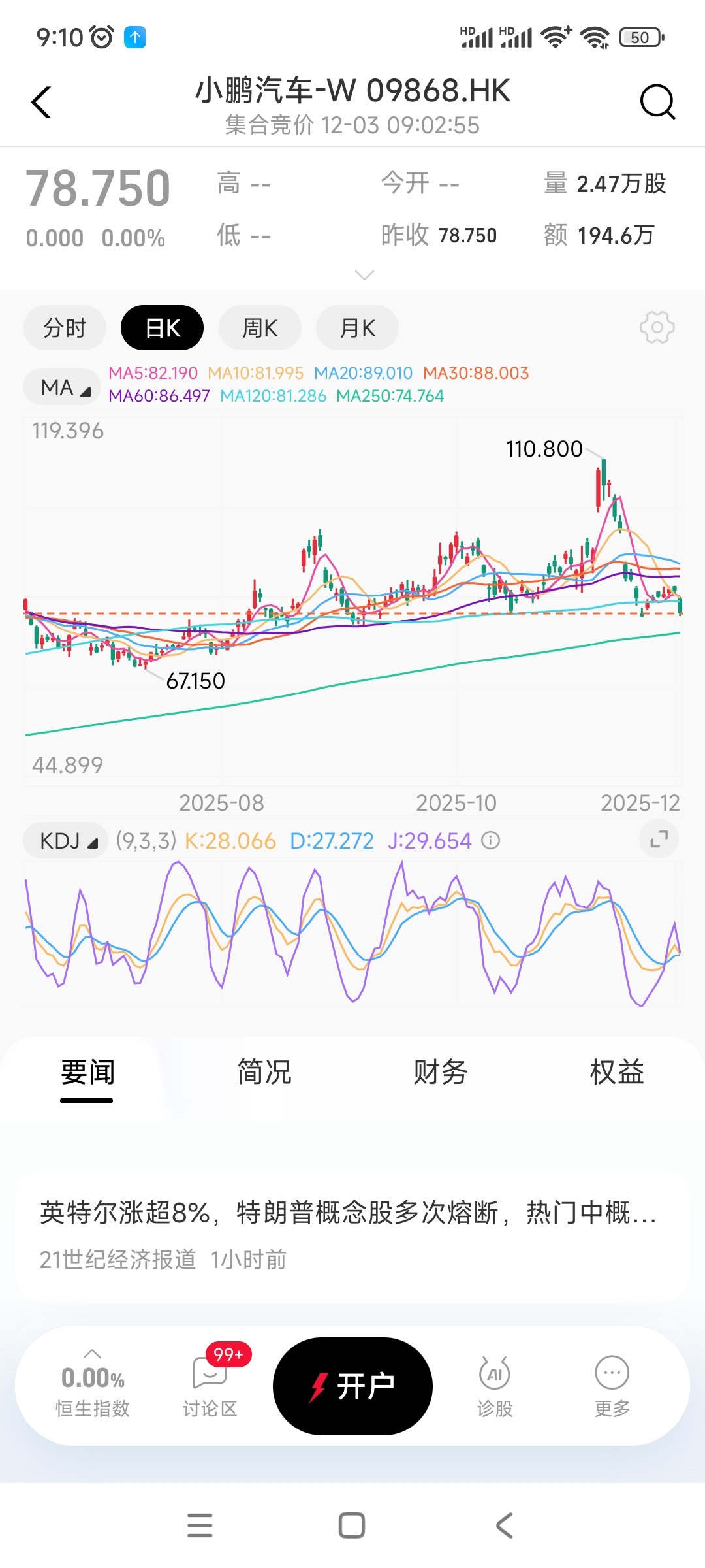 $小鹏汽车-W(HK|09868)$ 今天我的仓位将打满,下个季度我们再会,年线74元左右
