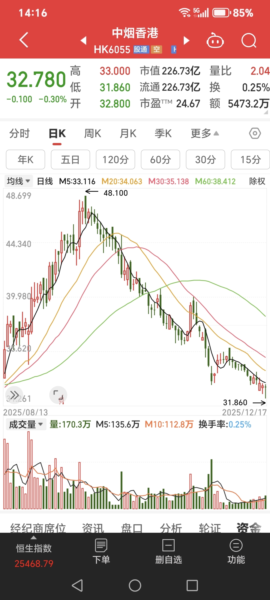 $小鹏汽车-W(HK|09868)$ 来吧,中烟香港垄断唯一烟草股。一辈子不卖的股林园总谈到的烟草。