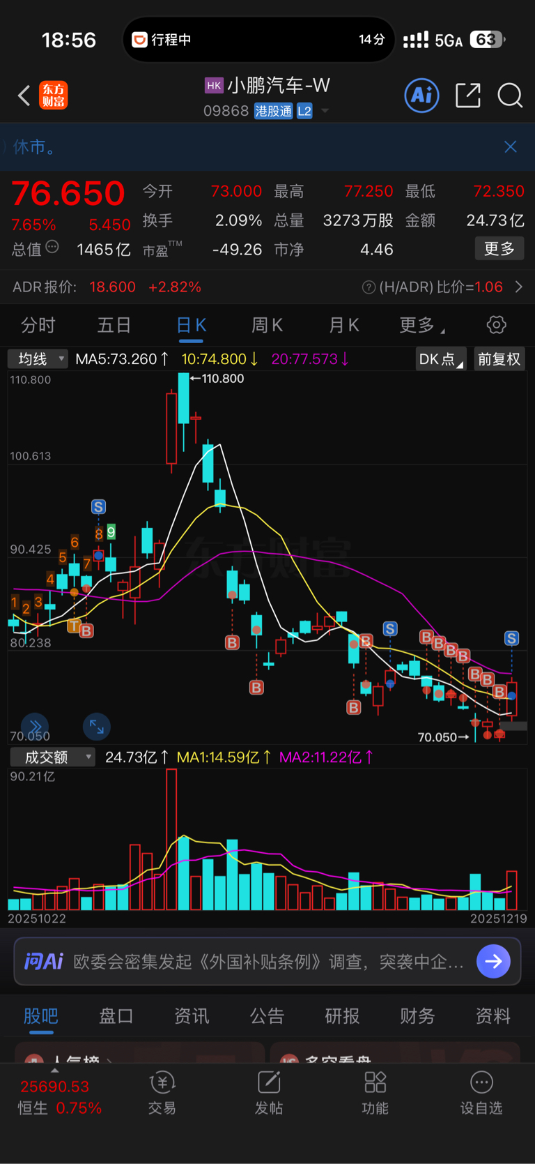 $小鹏汽车-W(HK|09868)$ 一直加仓一直跌,今天回本卖了一大半,韭菜命