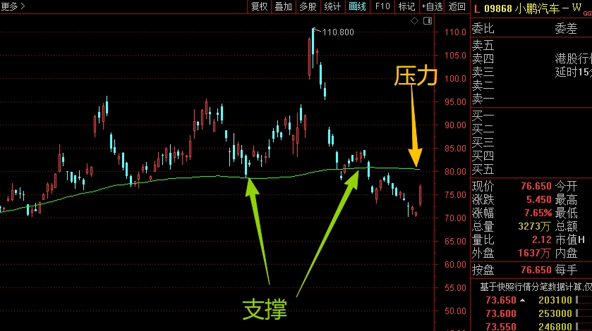 $小鹏汽车-W(HK|09868)$ 近期走势破位了,主要是前两周回落下来,之前一直能够得到支撑的大均线,没能稳住,跌破后没有马上拉起来站稳,所以形成了破位走势,这时候就要控制仓位应对了,没有重新站稳大均线支撑,都没有必要加重仓位。#炒股日记# #周末杂谈#