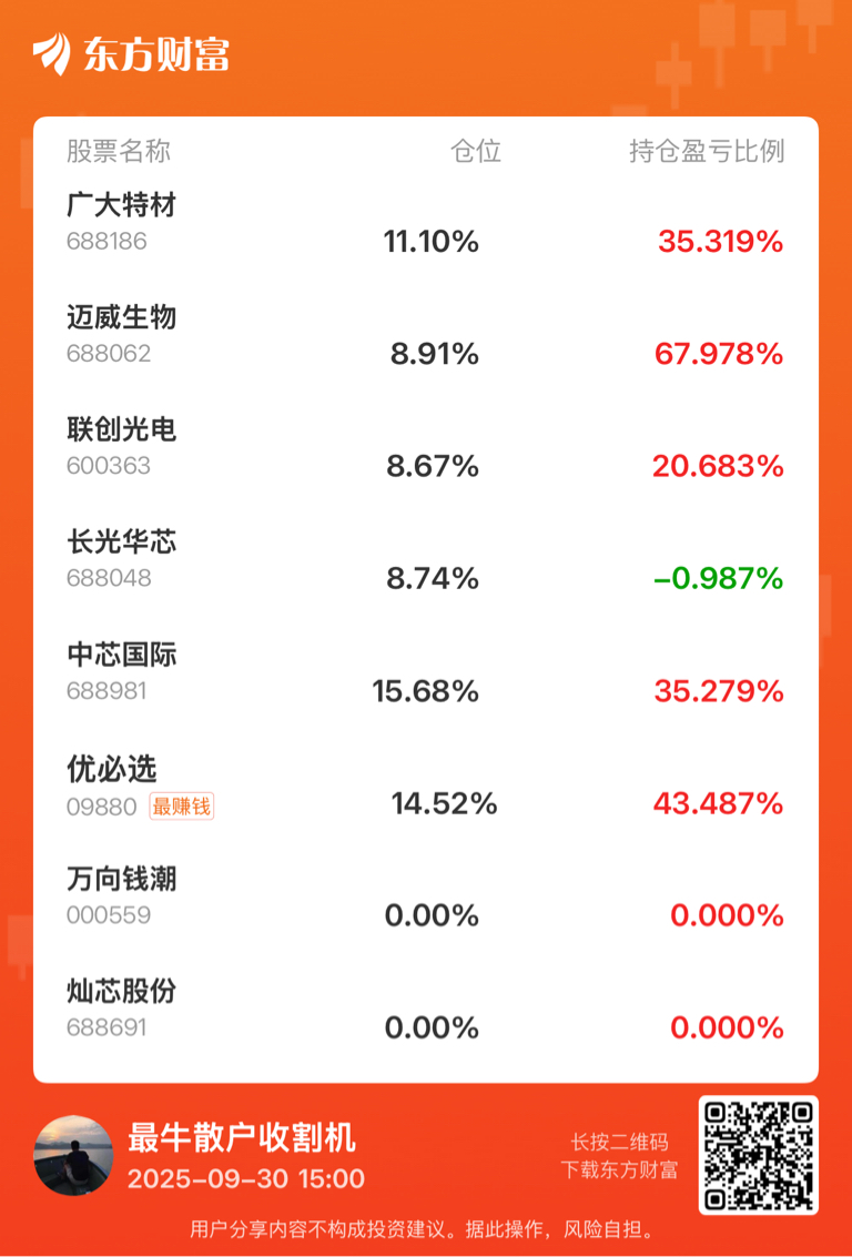 $优必选(HK|09880)$ $灿芯股份(SH688691)$ $中芯国际(SH688981)$ 感谢主力,九月非常顺利,十一后见