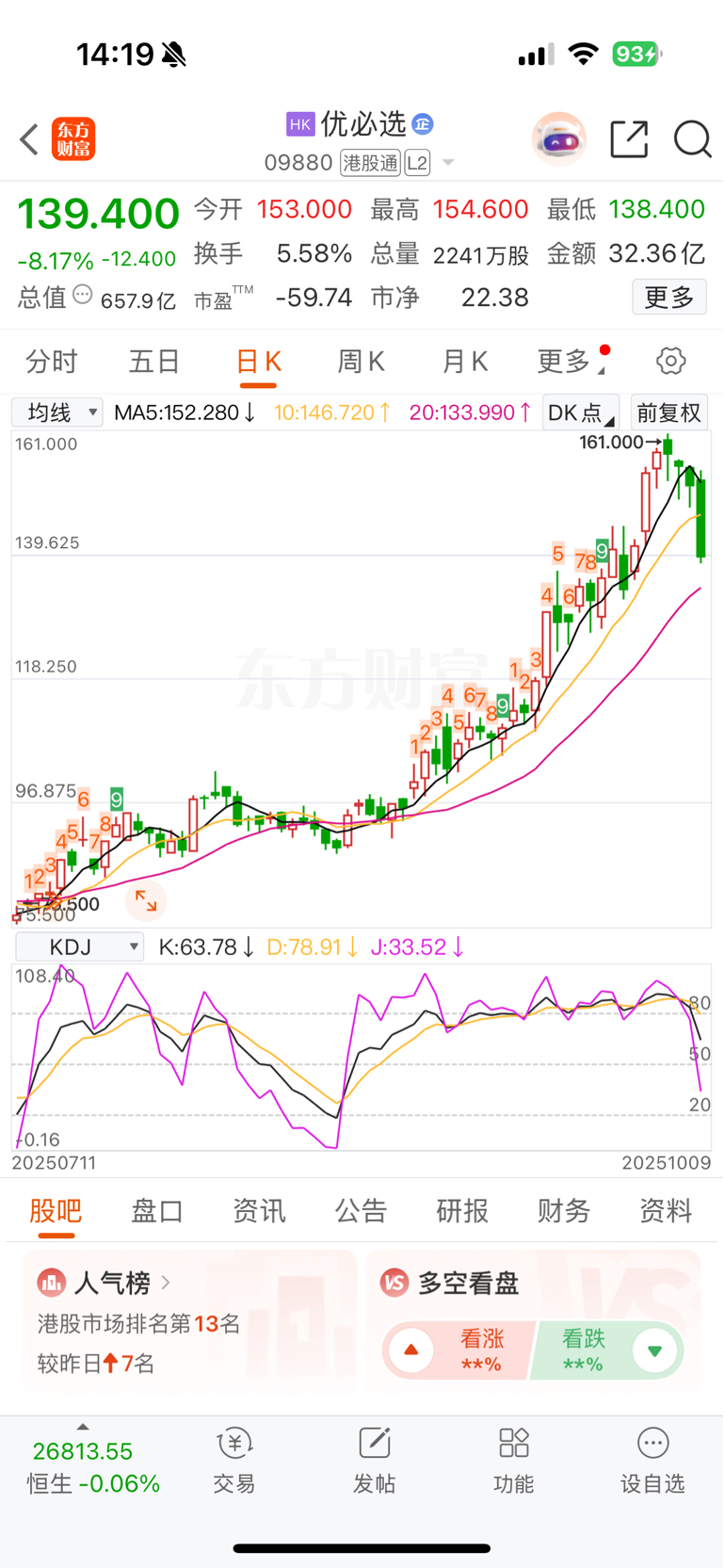 $优必选(HK|09880)$ 收盘之后看看有没有配股公告,如果配股价120,折价8%,反推股价130,这样明天就完成,股价反身朝上,去200元。