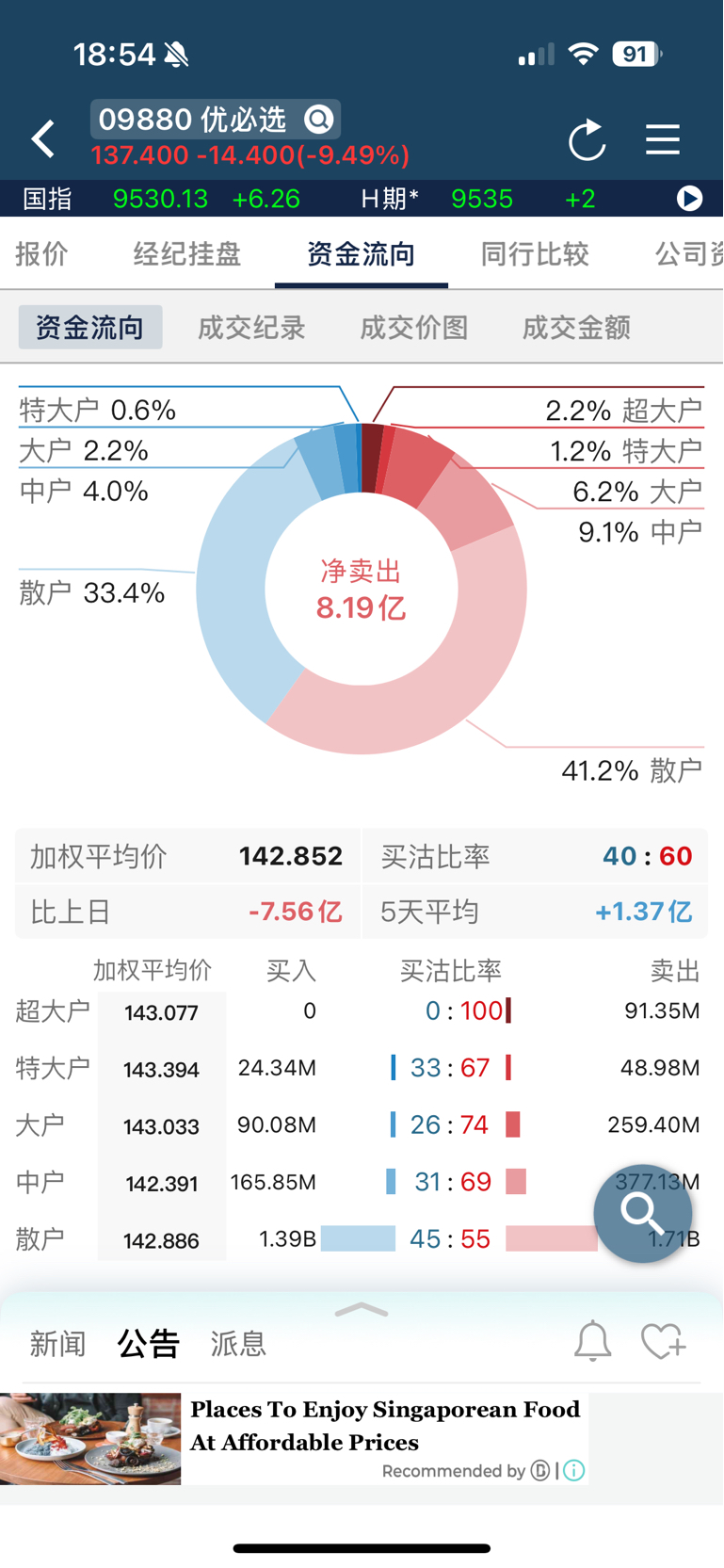 $优必选(HK|09880)$ 今天散户卖出的41. 2%,洗盘的可能性很大
