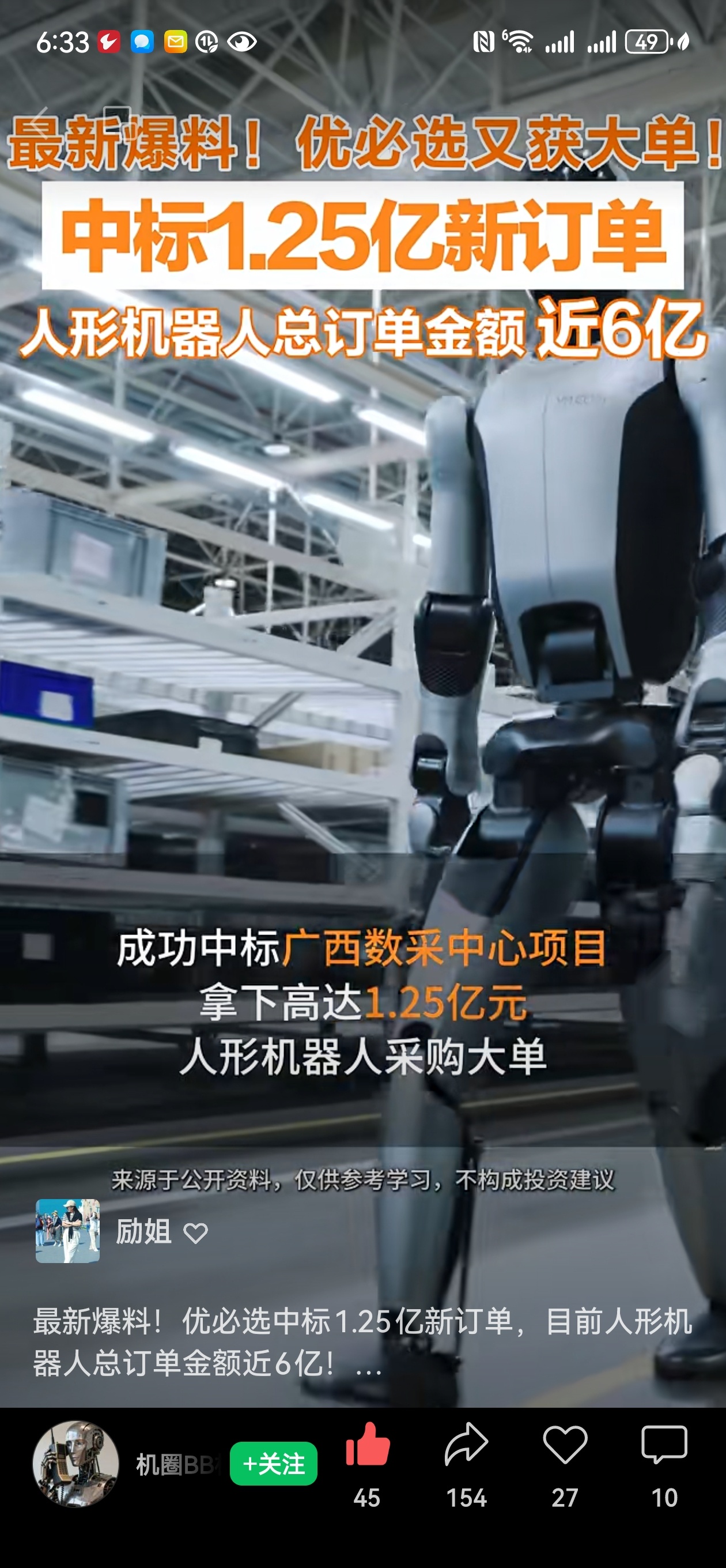 $优必选(HK|09880)$ 中标1.25亿新订单