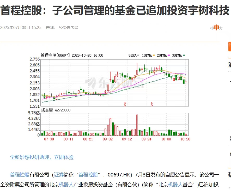 已追加宇树科技投资