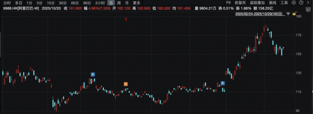 阿里巴巴-W大涨4.86%