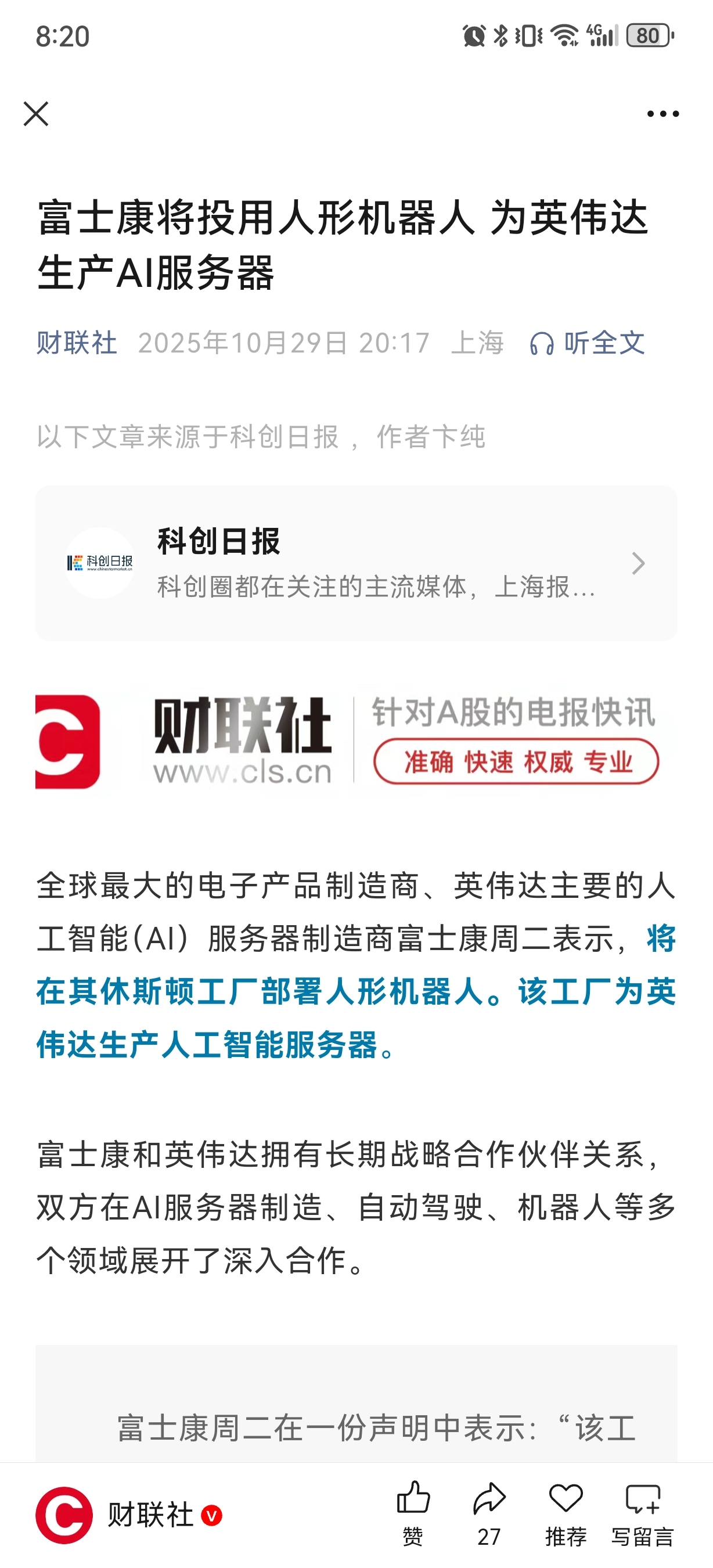 $优必选(HK|09880)$ 富士康优必选是全面战略合作,英伟达只做大模型 。