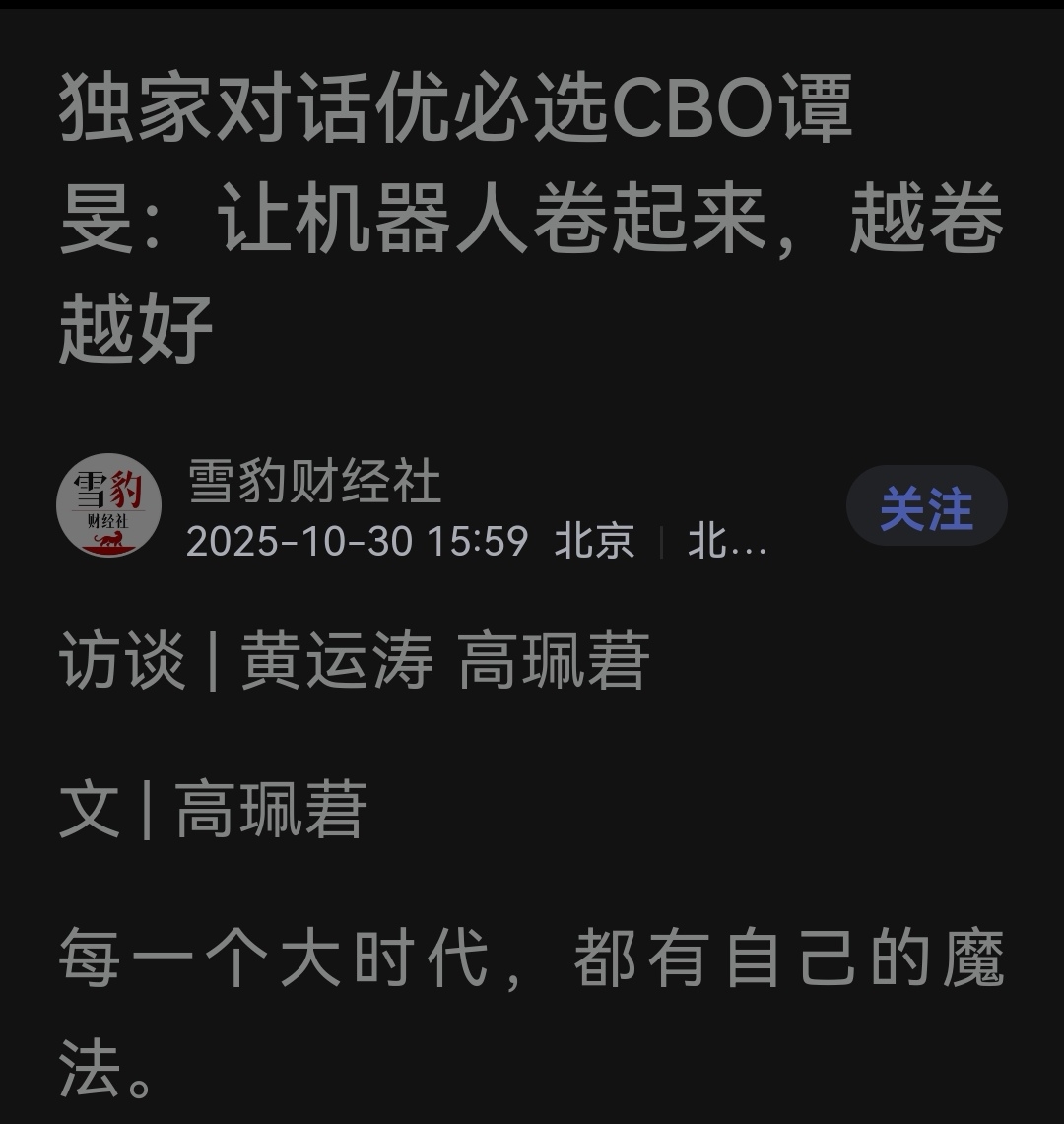 看了优必选CBO谭旻的独家专访的最大体会是:优必选的梦想价一旦突破2千元/股,前