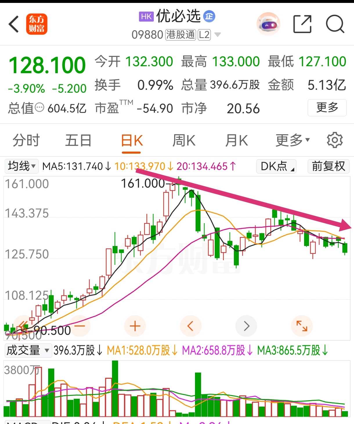 $优必选(HK|09880)$ 进入下行通道,走为上策。