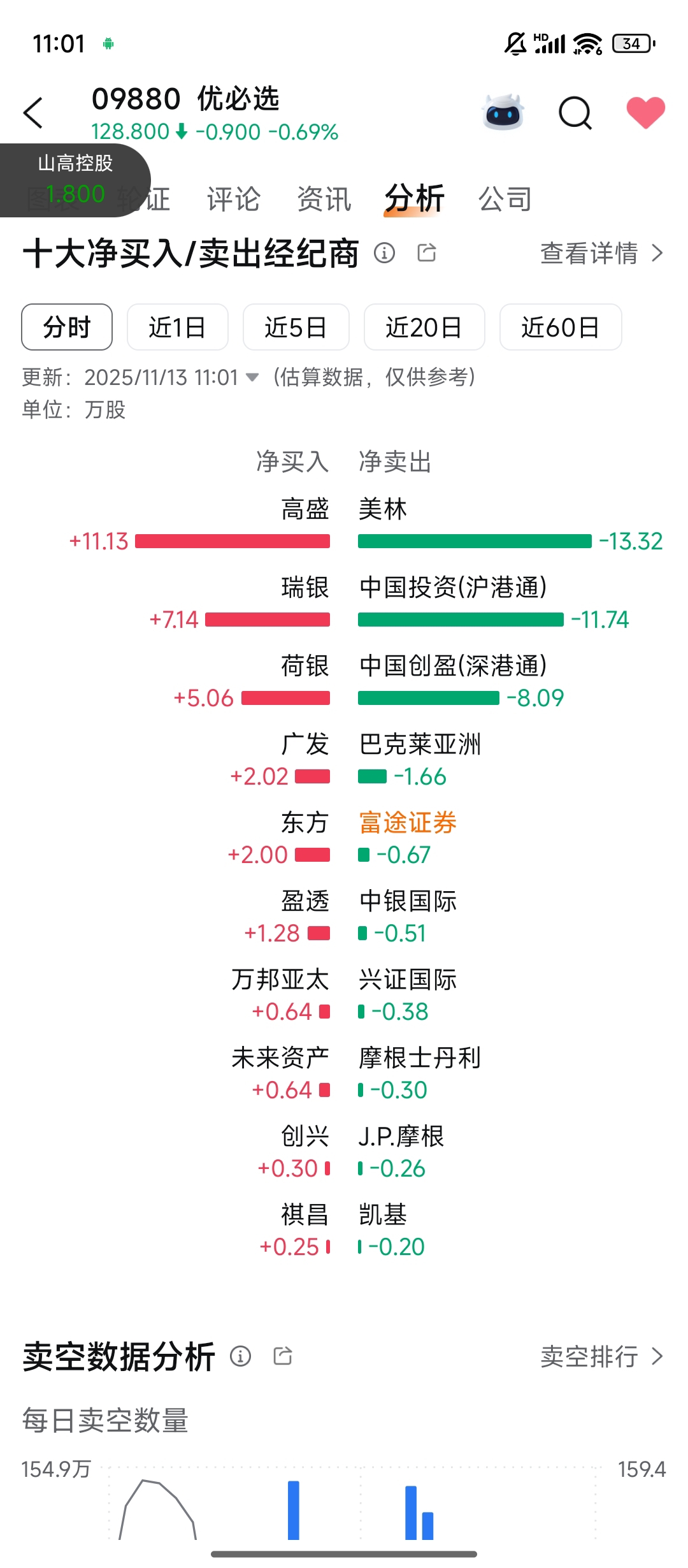 $优必选(HK|09880)$ 高盛唱空,买的最多?