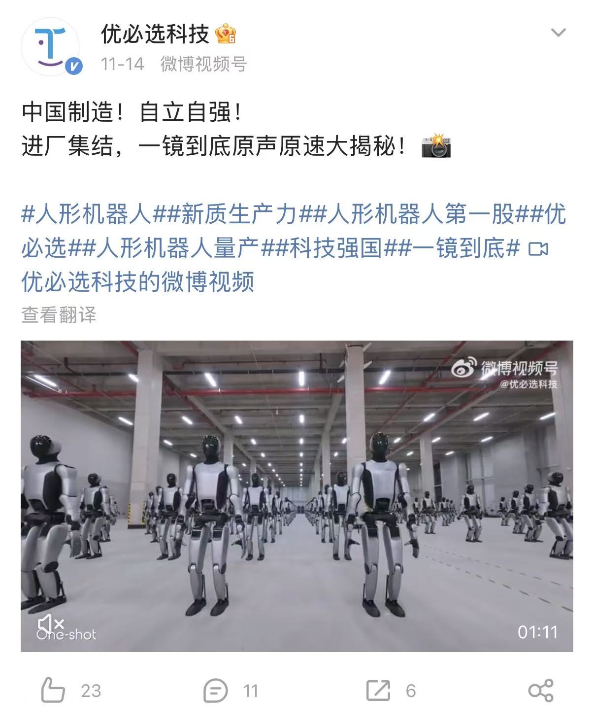 界面新闻注意到,11月14日,优必选在社交平台上发布了“一镜到底原声原速大揭秘”的视频,回应外界质疑。