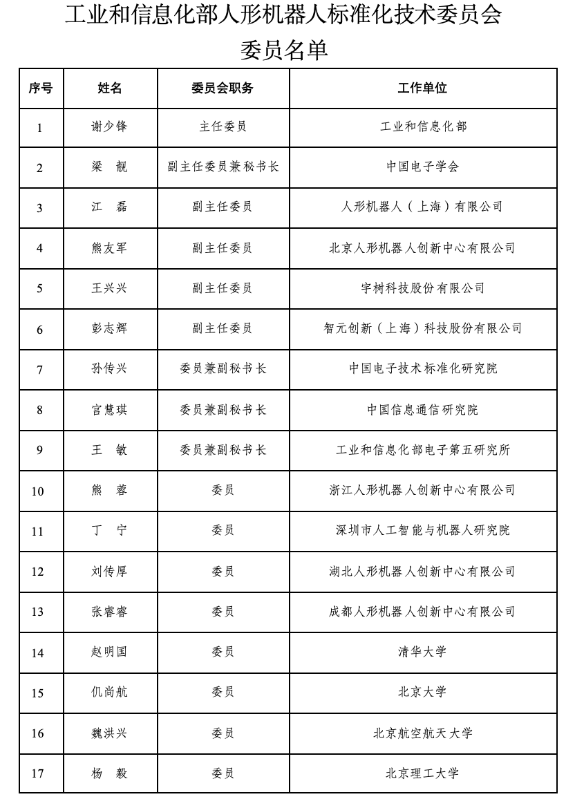 王兴兴、稚晖君入选,工信部人形机器人标准化技术委员会名单公布