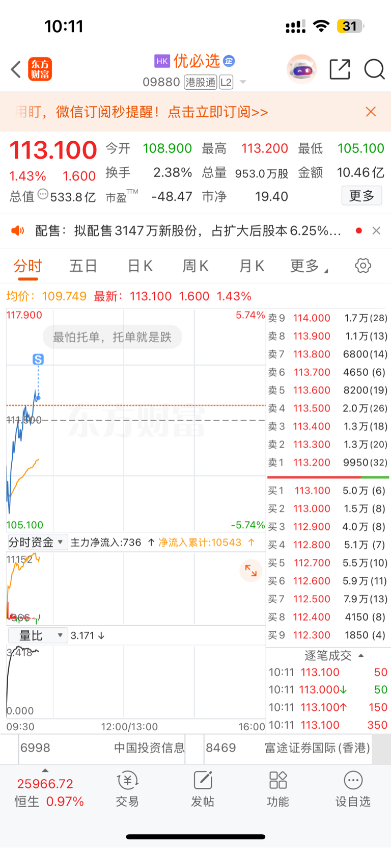 $优必选(HK|09880)$ 卖了一点。最近心理压力太大了。希望是卖飞了吧