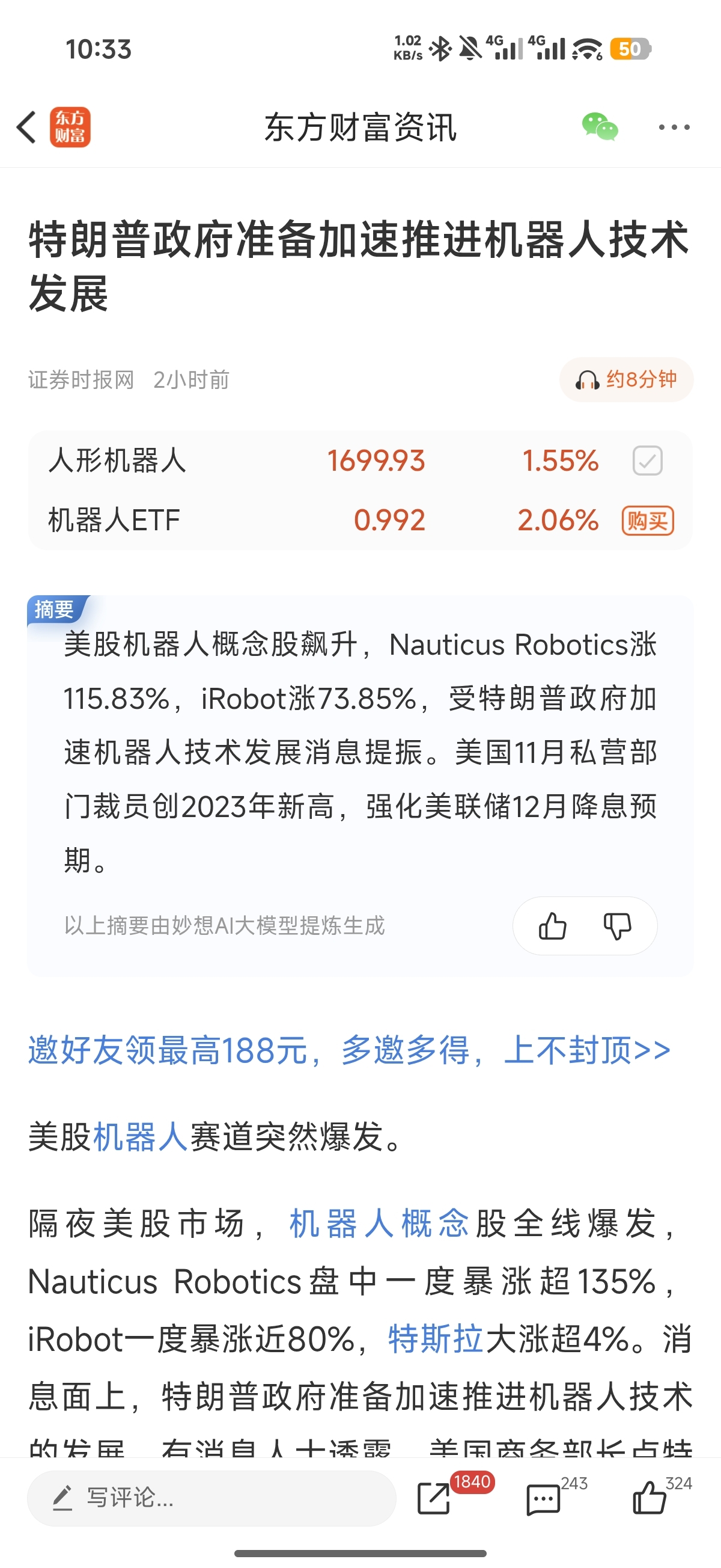 今天整个机器人板块涨是因为这个