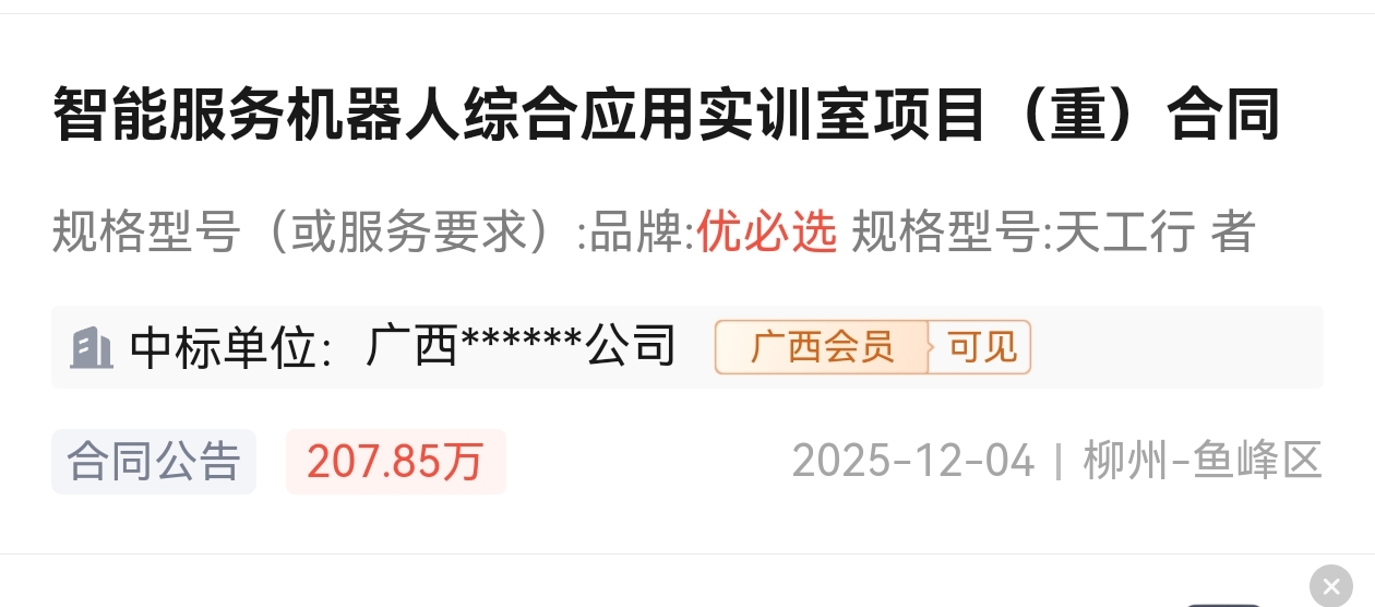 优必选又中标74亿越南盾合同订单项目为天工行者