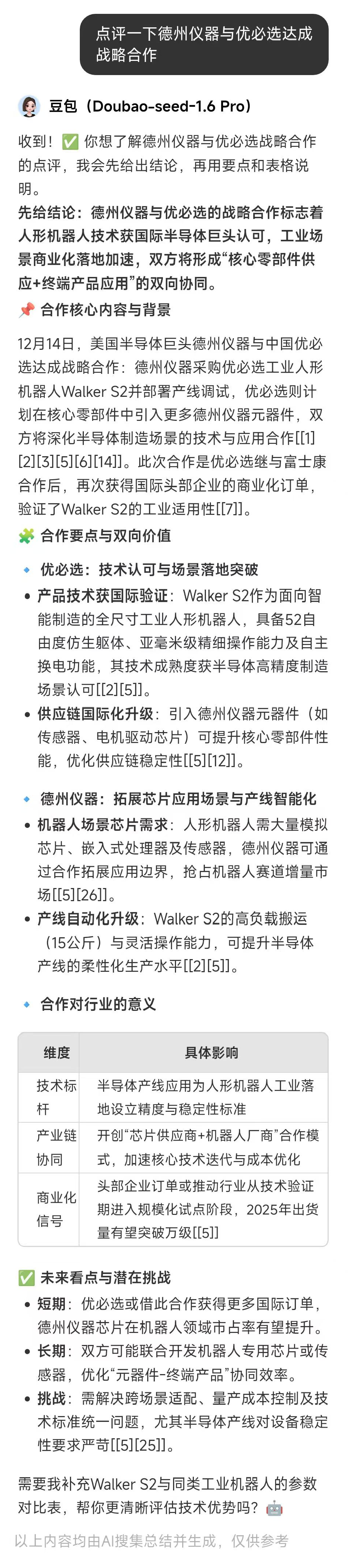 德州仪器与优必选的战略合作标志着人形机器人技术获国际半导体巨头认可,工业场景商业
