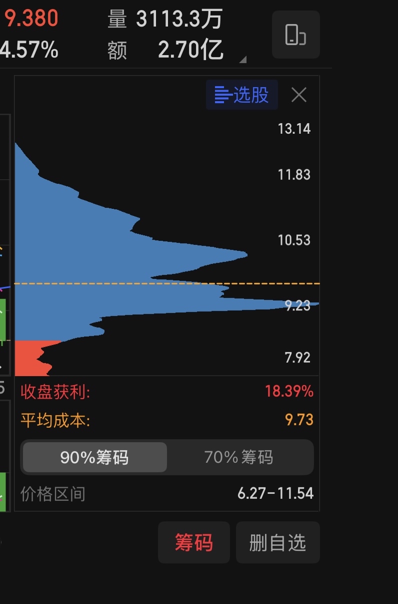 平均成本9.73,获利比例18.39%,也就是说目前持股的80%以上的人是是亏损