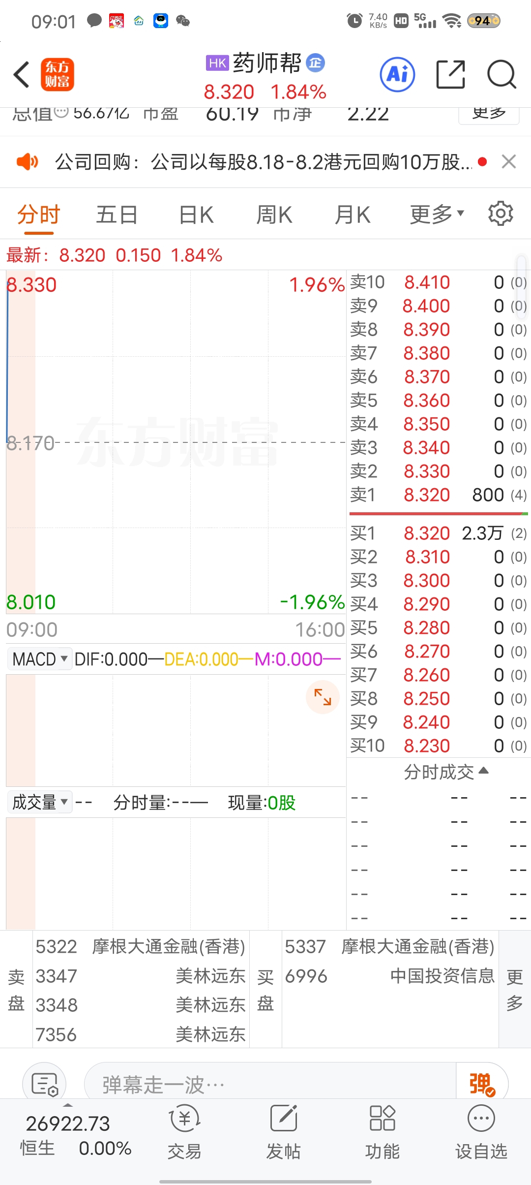 $药师帮(HK|09885)$ 东方证券,起床了砸盘了。之前都是你在 卖,现在换 霉林远东挂卖