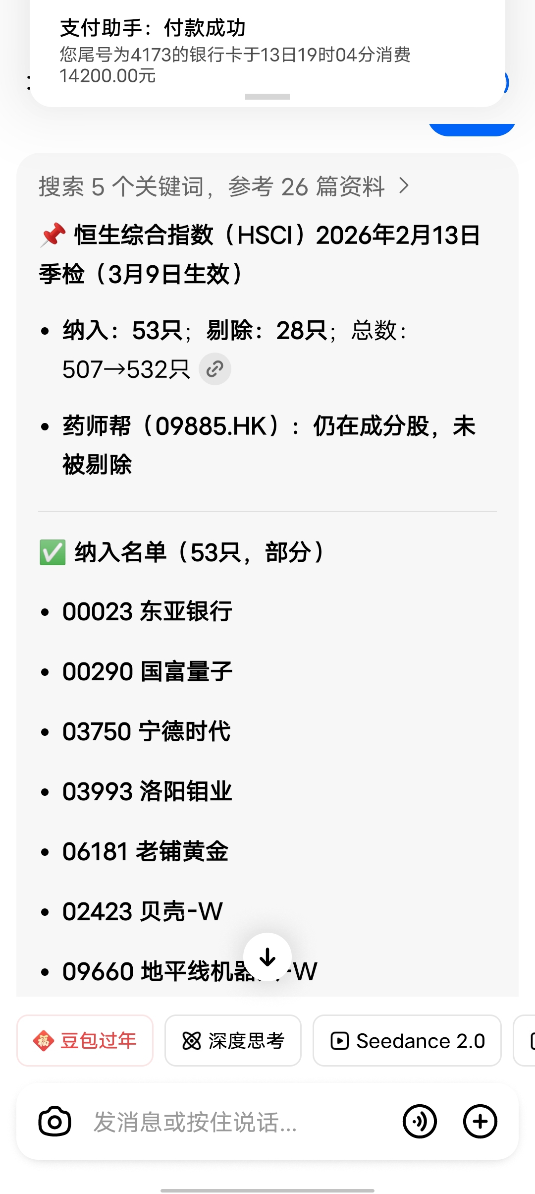 下周一,香港账户还可以交易!!恒生综合指数(HSCI)2026年2月13日季检(