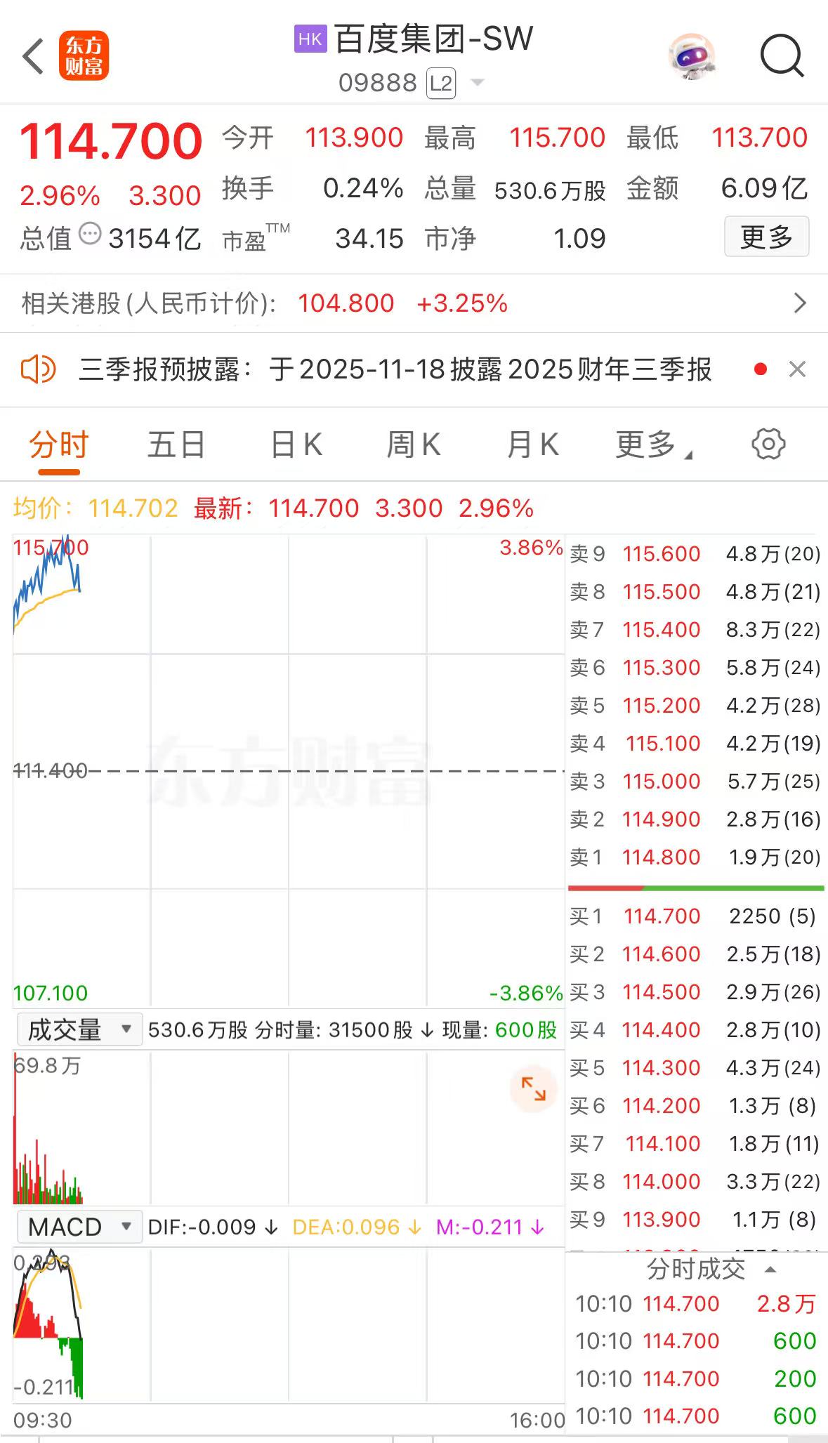 港股异动 | AI业务收入强劲 百度集团-SW涨近3%