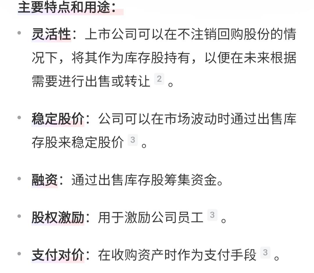 $贪玩(HK|09890)$ 今天公告意思就是有890万多的股份变成库存股,库存股的用处如图所示