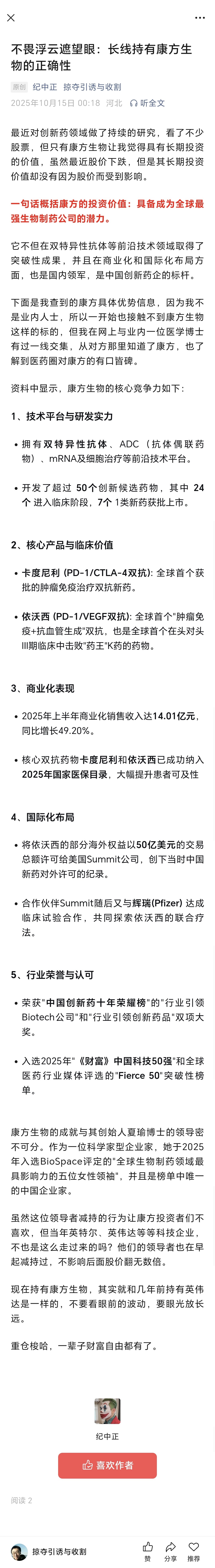 不畏浮云遮望眼:长线持有康方生物的正确性