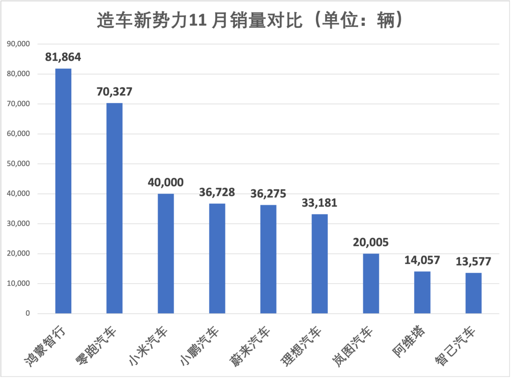 “蔚小理”三家销量皆无缘4万辆门槛。其中蔚来和小鹏环比轻微下滑,这两家车企在旺季10月的销量均突破了4万辆。
