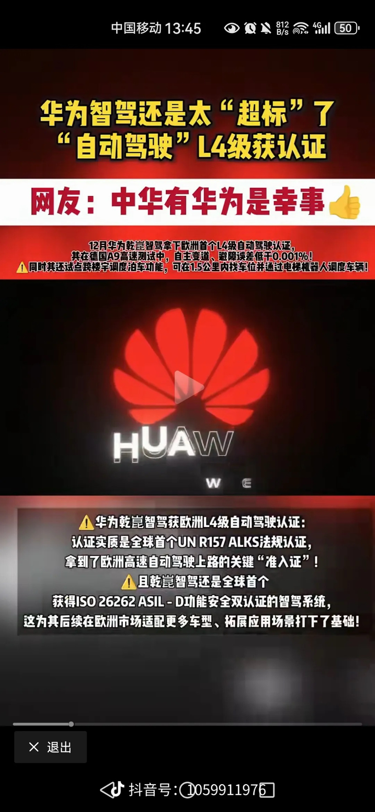 $赛力斯(HK|09927)$ 欧洲L4都认证了,还是第一个,唯一