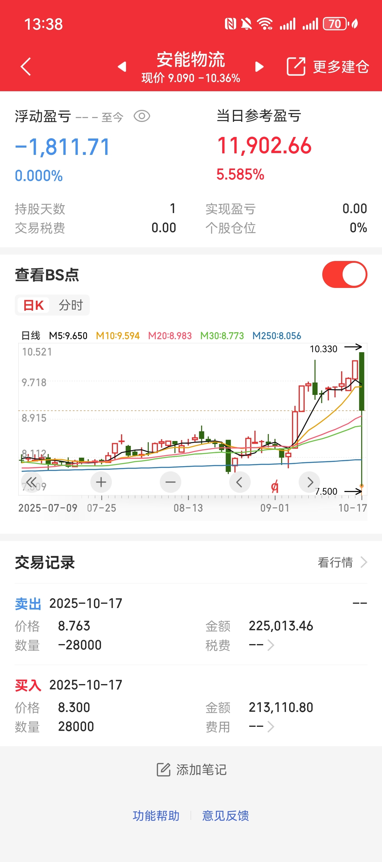 $安能物流(HK|09956)$ 挣了5个点就走,心满意足