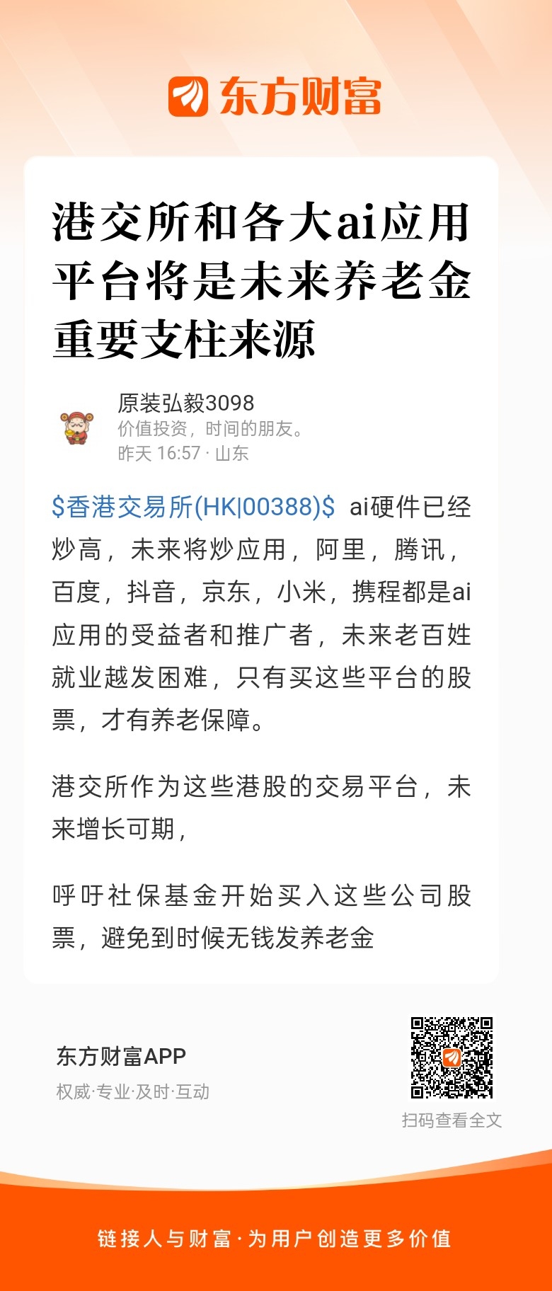 郑重声明:用户在财富号/股吧/博客等社区发表的所有信息(包括但不限于文字、视频、音频、数据及图表)仅代表个人观点,与本网站立场无关,不对您构成任何投资建议,据此操作风险自担。请勿相信代客理财、免费荐股和炒股培训等宣传内容,远离非法证券活动。请勿添加发言用户的手机号码、公众号、微博、微信及QQ等信息,谨防上当受骗!