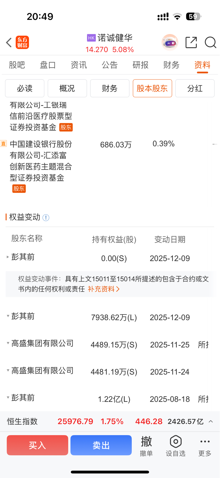 $诺诚健华(HK|09969)$ 这是显示彭其前减持完了吗?