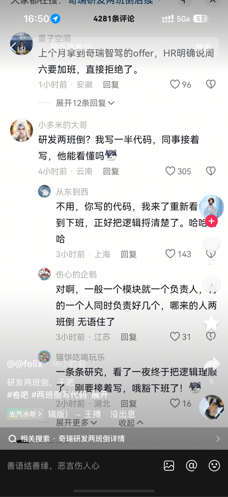 奇瑞研发2班倒哈哈大家去看看奇葩