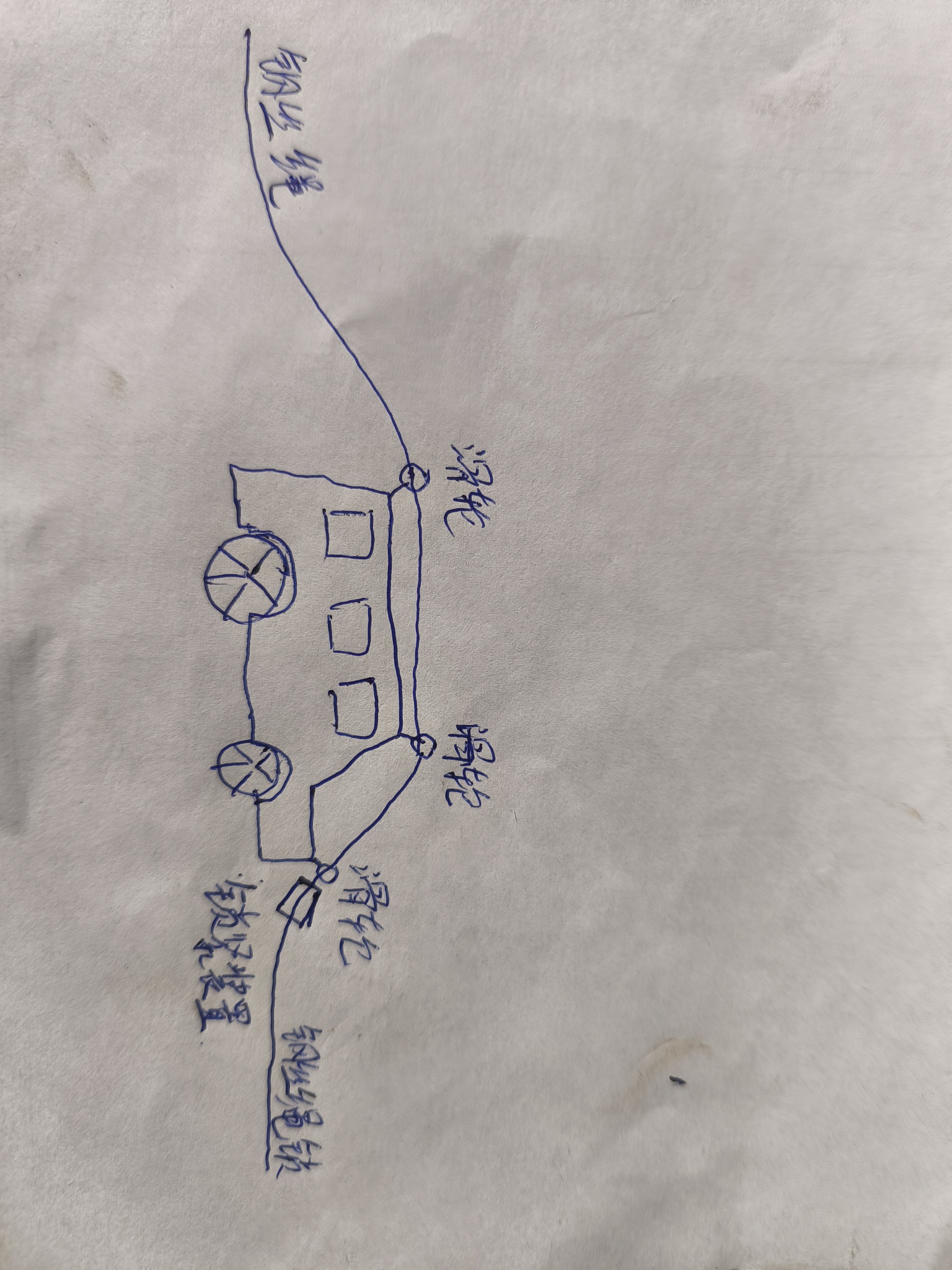 把钢丝绳设计到车上面来,车轮就不会缠到了呀。