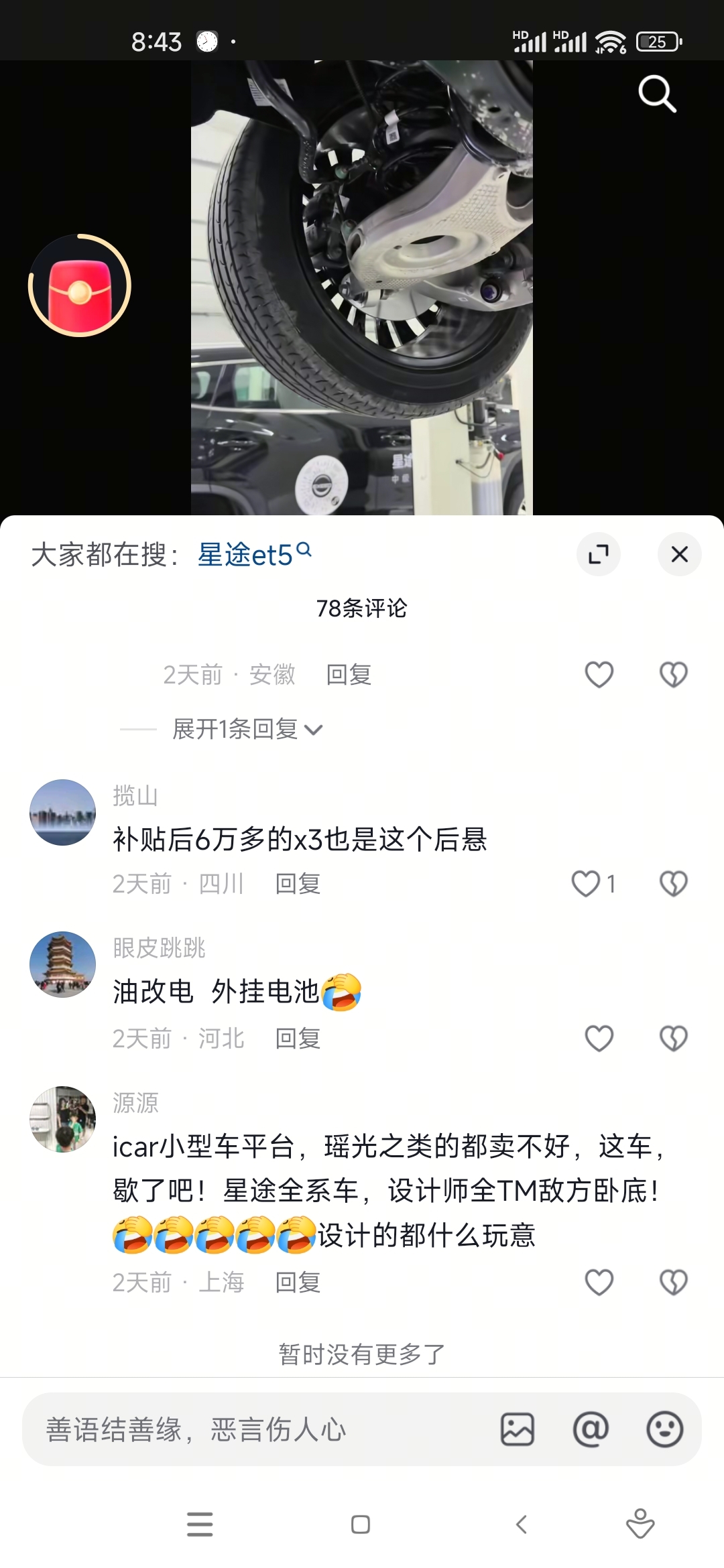 我觉得这个股票还得跌,星途新款上市的et5,好家伙,这都什么年代了,应该是油改电