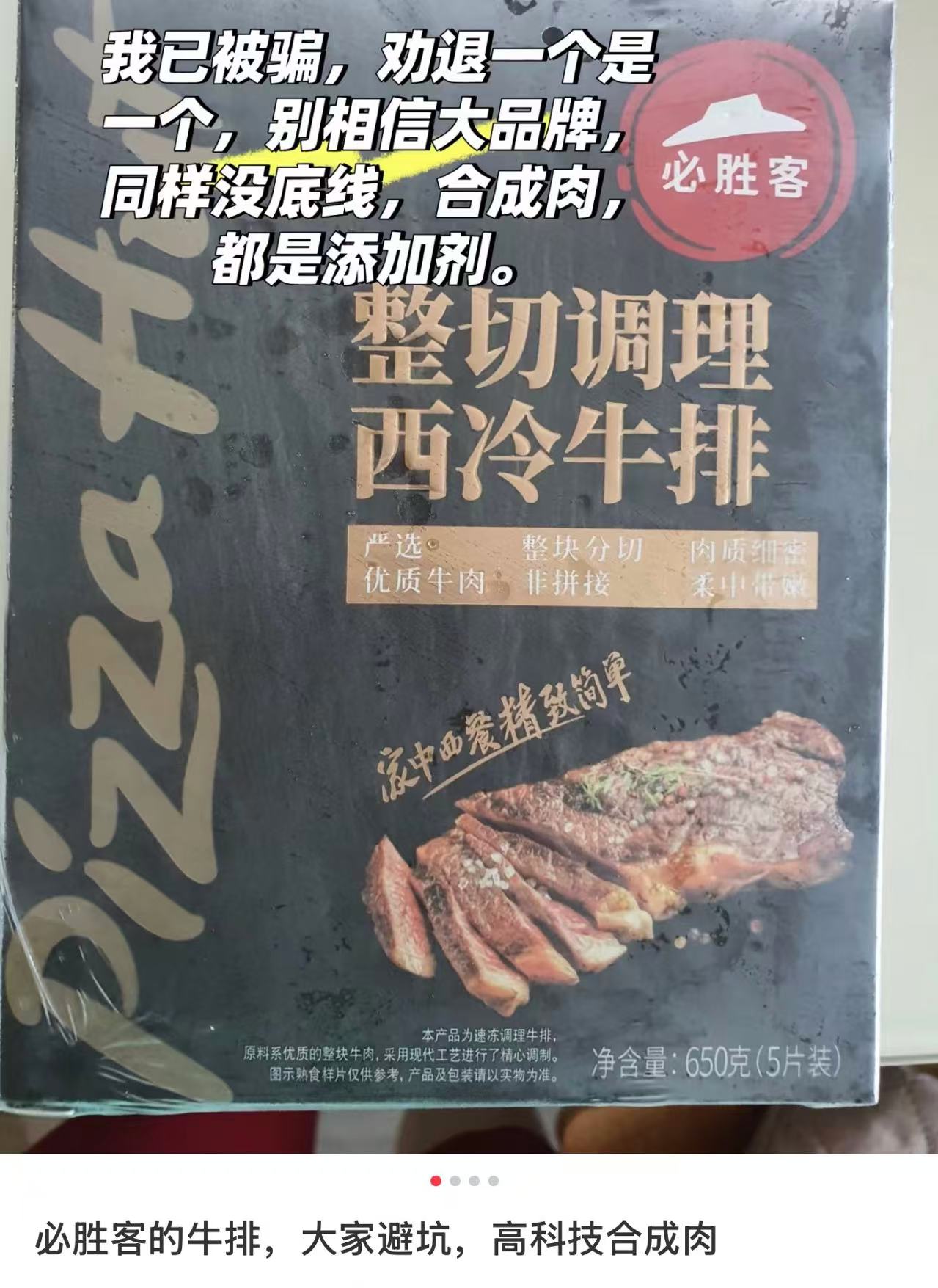必胜客也玩“大字吸睛小字免责”:“整切”牛排是调理肉