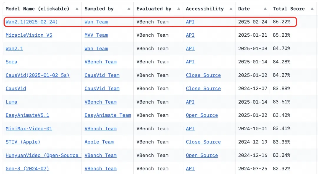 14B版本万相模型在指令遵循、复杂运动生成、物理建模、文字视频生成等方面表现突出,在权威评测集Vbench中,万相2.1以总分86.22%大幅超越Sora、Luma、Pika等国内外模型,稳居榜首位置。