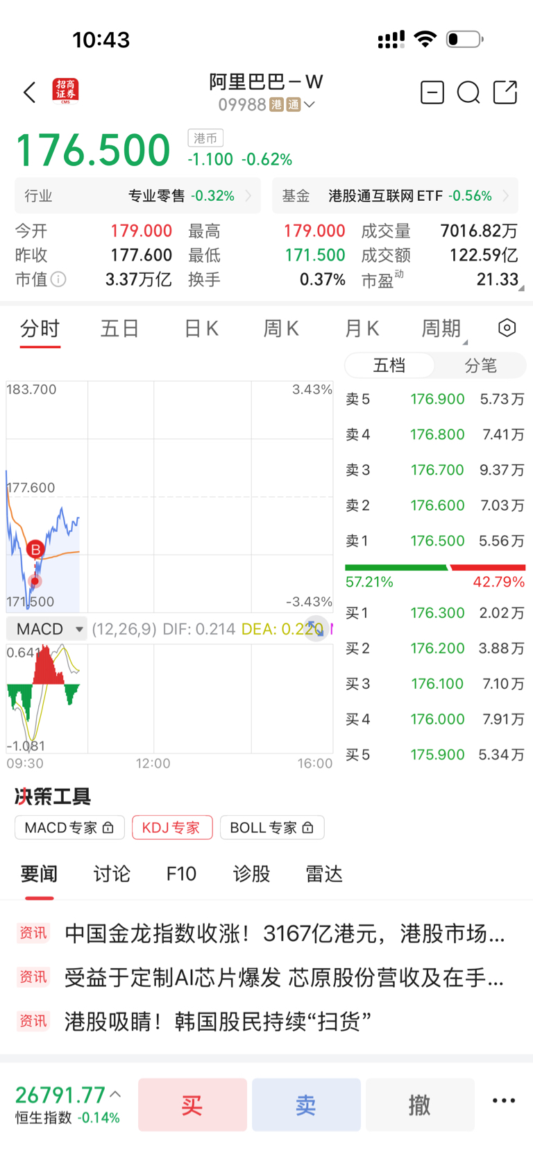 $阿里巴巴-W(HK|09988)$ 不敢下来我就敢补