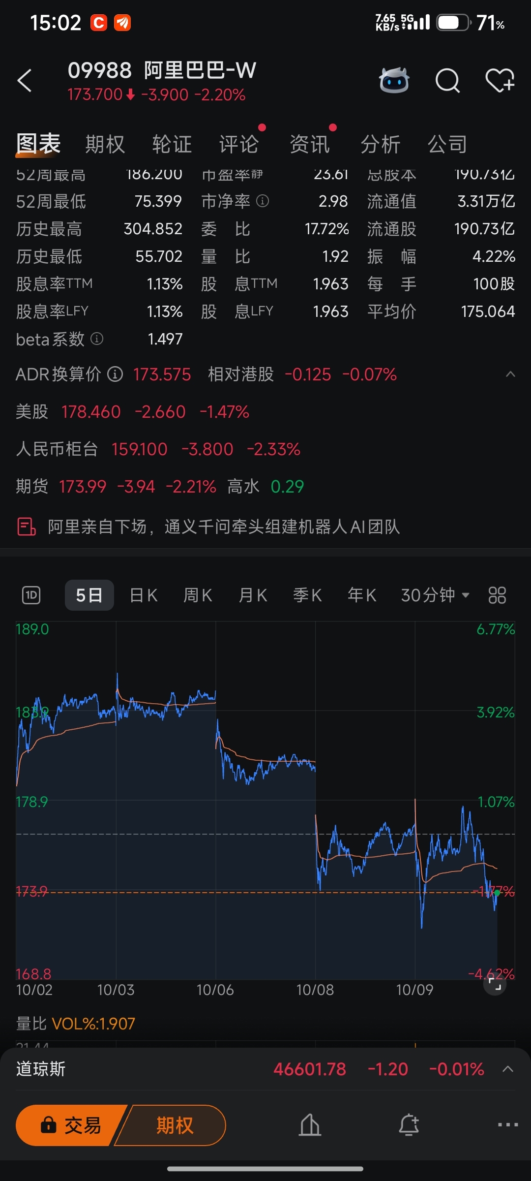 $阿里巴巴-W(HK|09988)$ 港股通接盘侠。#炒股日记# #实盘记录#
