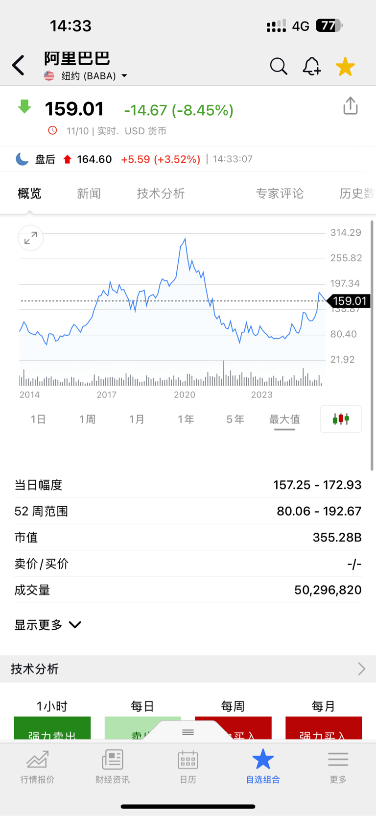 $阿里巴巴-W(HK|09988)$ 夜盘的确在涨,有点吃不准了。