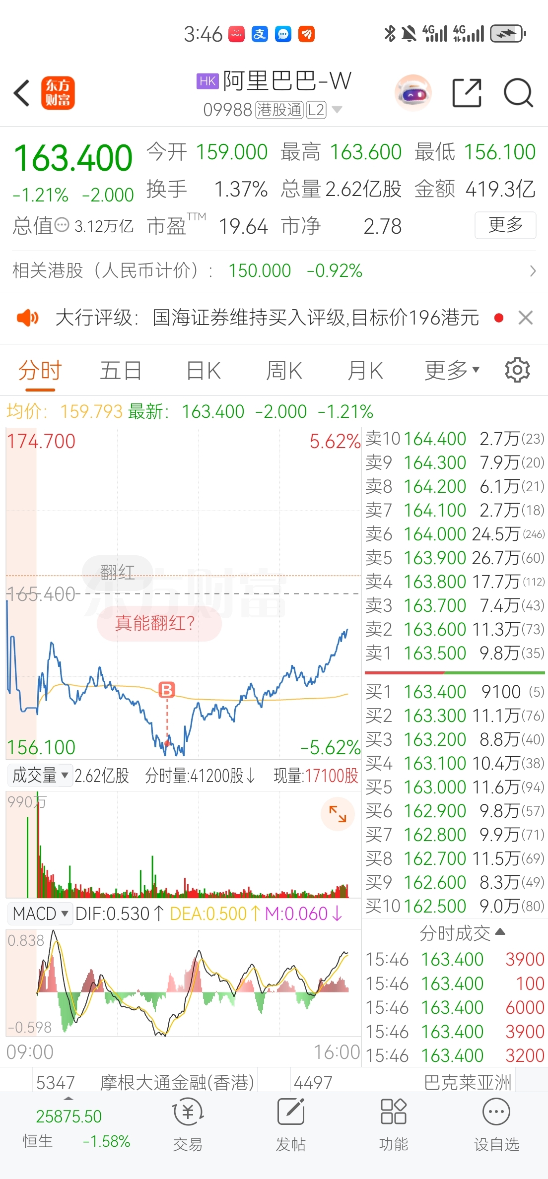 $阿里巴巴-W(HK|09988)$ 不知抄的是底,还是下跌中继