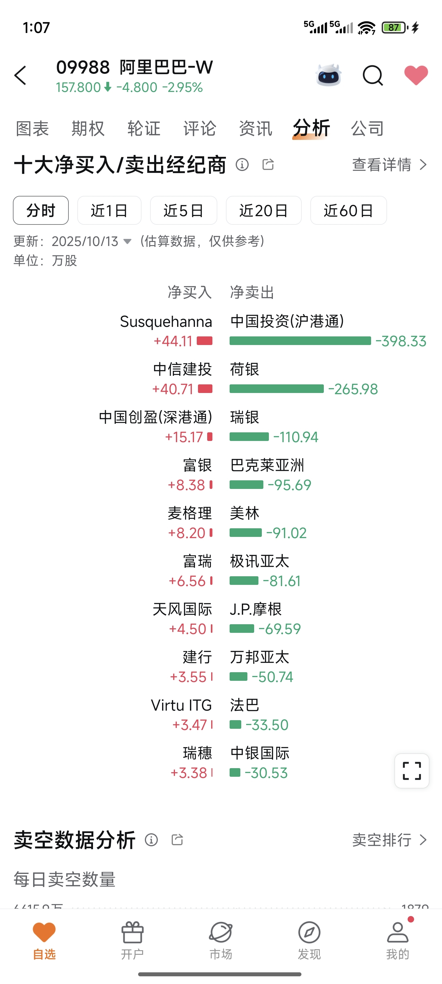 $阿里巴巴-W(HK|09988)$ 昨天外资做空今天南向也做空玩毛线